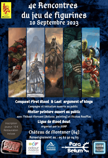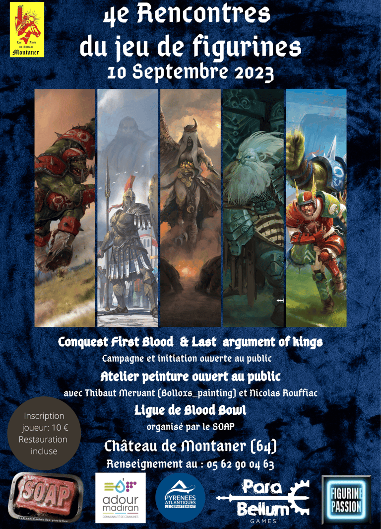 Nos amis du SOAP (Sud Ouest Animation et Prestation) proposeront un tournoi de Blood Bowl, le célèbre jeu de Games Workshop. Dans ce jeu, deux équipes s'affrontent dans un match dont les règles sont un mix de rugby, de football américain et de beaucoup de fun !