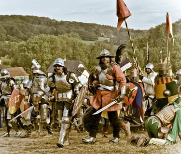 En 1337, Philippe VI prononce la commise*, c’est-à-dire la confiscation, de l’Aquitaine. Après trois ans de luttes pour récupérer son héritage, Edouard III prend le titre de roi de France à Gand et ouvre officiellement les hostilités.Les défaites se succèdent du côté français. Le 24 juin 1340 la flotte de Philippe VI est décimée à la bataille de l’Écluse, en Flandres. Le 26 août 1346 à Crécy, alors que les troupes françaises tentent de mettre un terme à l’avancée d’Edouard III en Normandie, les archers anglais écrasent leurs ennemis pourtant plus nombreux. Continuant sur sa lancée, Édouard III installe son armée devant Calais qui, au terme de onze mois de siège, finit pas capituler. Le 13 août 1347, six bourgeois, pieds et têtes nus, la corde au cou, remettent les clés de la ville. Après une trêve fragile imposée par la Grande Peste, le Prince Noir, fils d’Édouard III, débarque à Bordeaux et mène des raids dévastateurs jusqu’à Narbonne et en Languedoc. L’armée du nouveau roi de France sacré en 1350, Jean II le Bon, tente de l’arrêter à Poitiers. Mais les soldats français sont mis en déroute et Jean II est capturé le 19 septembre 1356.